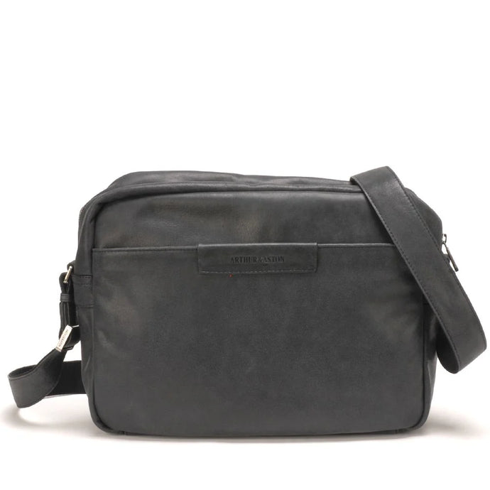 Cristiano destroyed leather messenger bag - Arthur & Aston noir