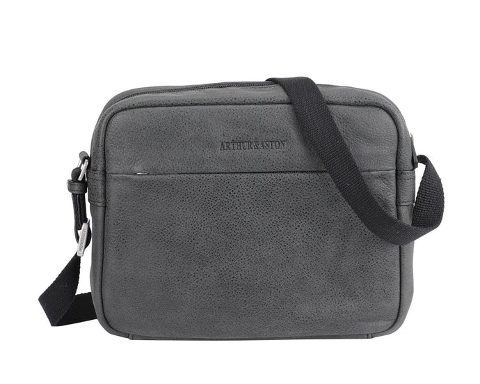 Cristiano destroyed leather crossbody bag - Arthur & Aston SKU: 62-1044-NOIR